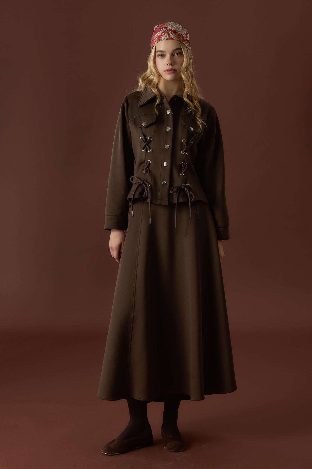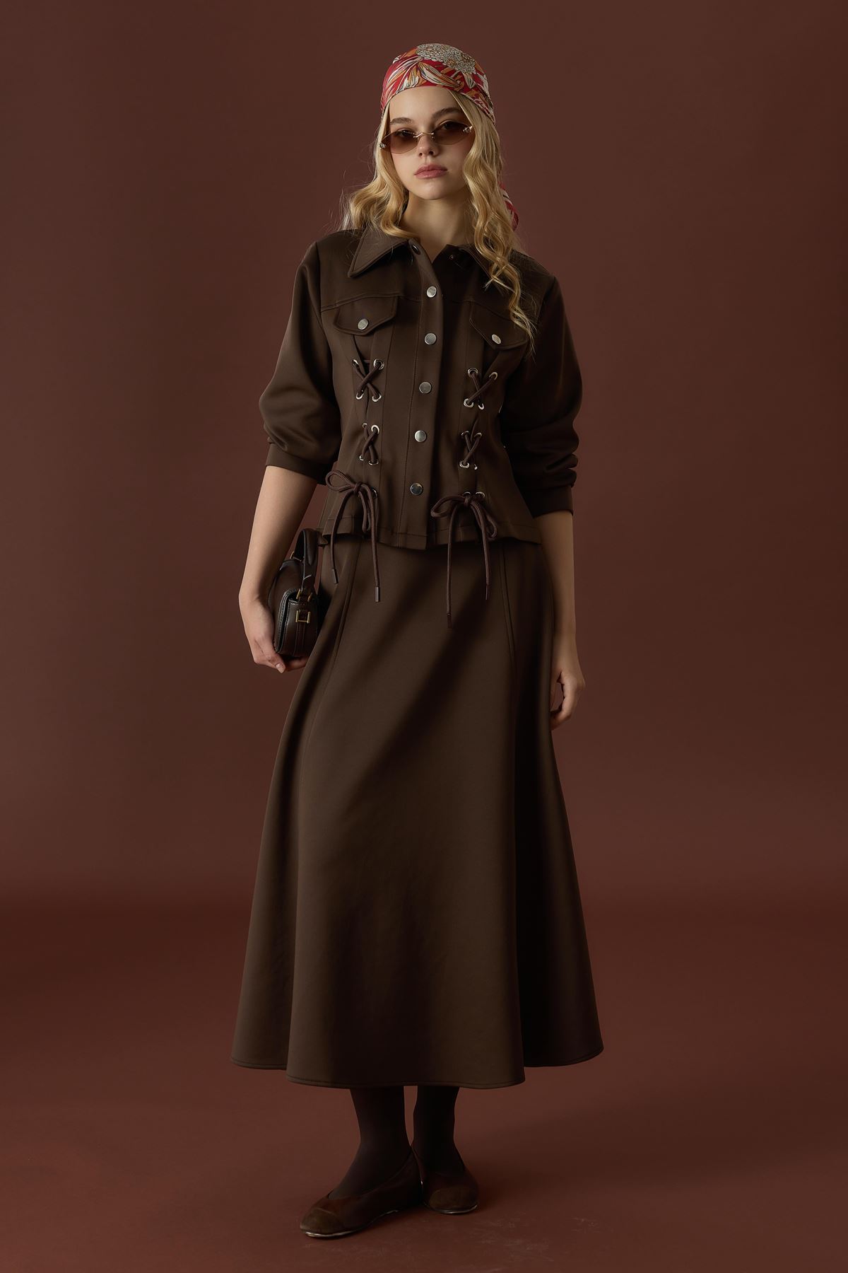 Ürün Tanımı: Zarif tasarımı ve modern detaylarıyla öne çıkan Menra Kuşgözü Detaylı Takım, sofistike duruşuyla gardırobunuzun en özel parçalarından biri olmaya aday. Ön kısmındaki kuşgözü bağlama detayları ile özgün bir şıklık sunarken, scuba kumaşı sayesinde formunu korur ve gün boyu konfor sağlar. Ürün Özellikleri: • Kumaş: Scuba • Takım: Üst + Etek • Üst uzunluğu: 55 cm • Etek uzunluğu: 95 cm • Ön kuşgözü bağlama detaylı tasarım, çıt çıtlı, manşetli • Modern ve zarif siluet • Günlük ve şık kullanıma uygun Kullanım Alanı: Hem iş hayatında hem de özel davetlerde tercih edebileceğiniz bu takım, rahat formu ve zarif görünümü ile kombinlerinize sofistike bir hava katar. Topuklu ayakkabılarla elegan, düz ayakkabılarla modern bir şıklık sunar. BAKIM: Kısa programda 30 derecede yıkayınız. Sererek kurutunuz. Elle ölçümlerde 2-3 cm fark edebilir. MANKEN ÖLÇÜLERİ 176 CM 53 KİLO 1 BEDEN