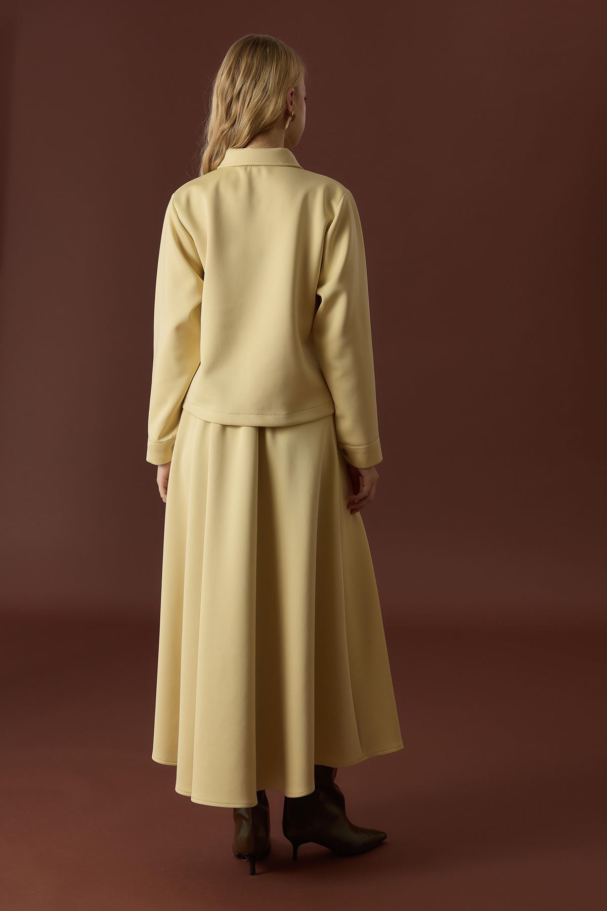 Hem iş hayatında hem de özel davetlerde tercih edebileceğiniz bu takım, rahat formu ve zarif görünümü ile kombinlerinize sofistike bir hava katar. Topuklu ayakkabılarla elegan, düz ayakkabılarla modern bir şıklık sunar.