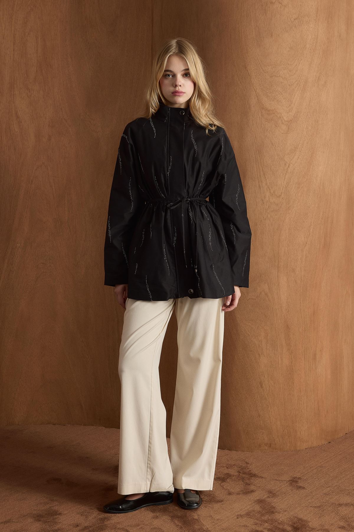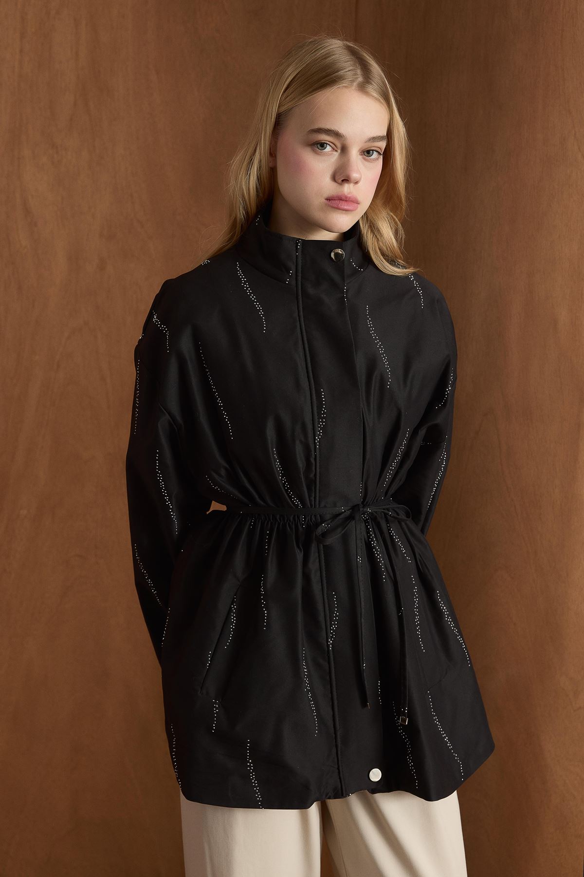 Ahel 6966 Taş İşlemeli Kısa Trençkot