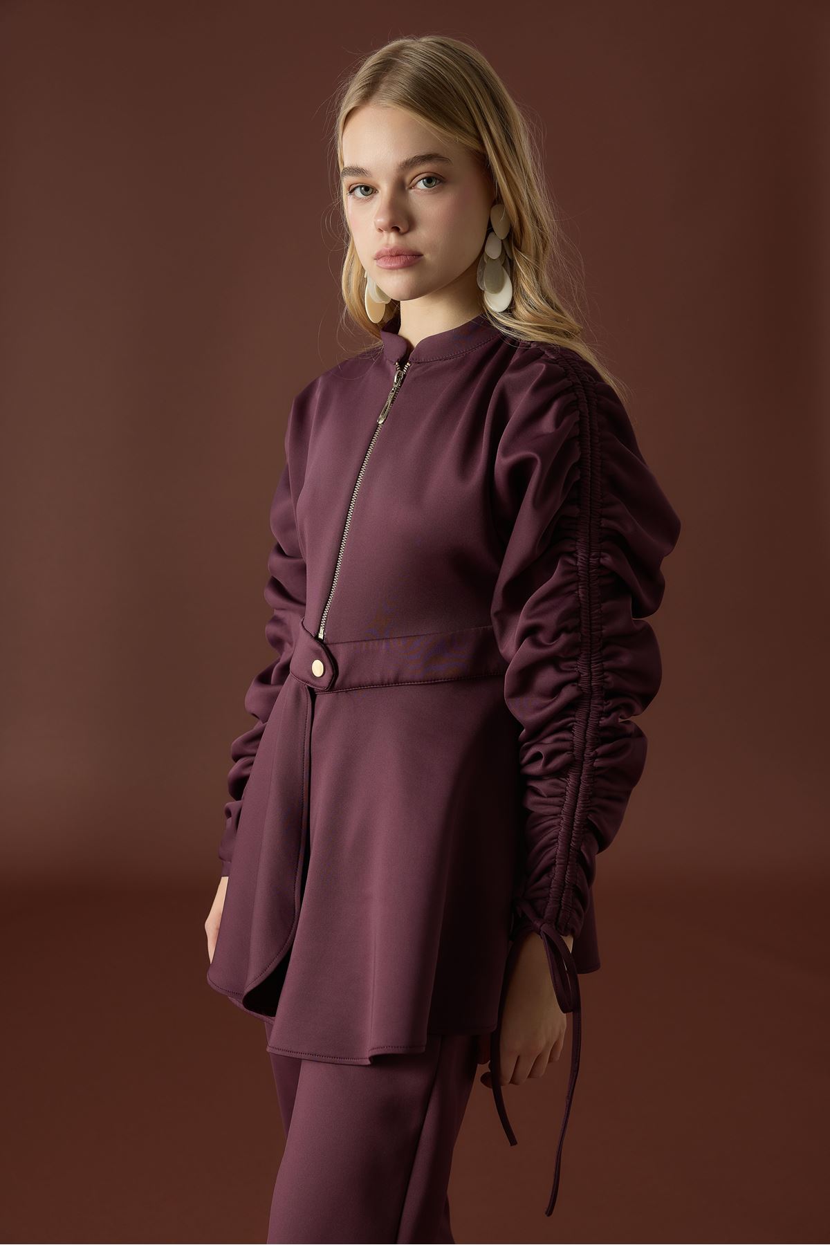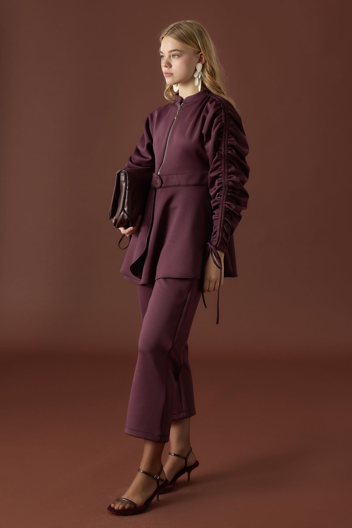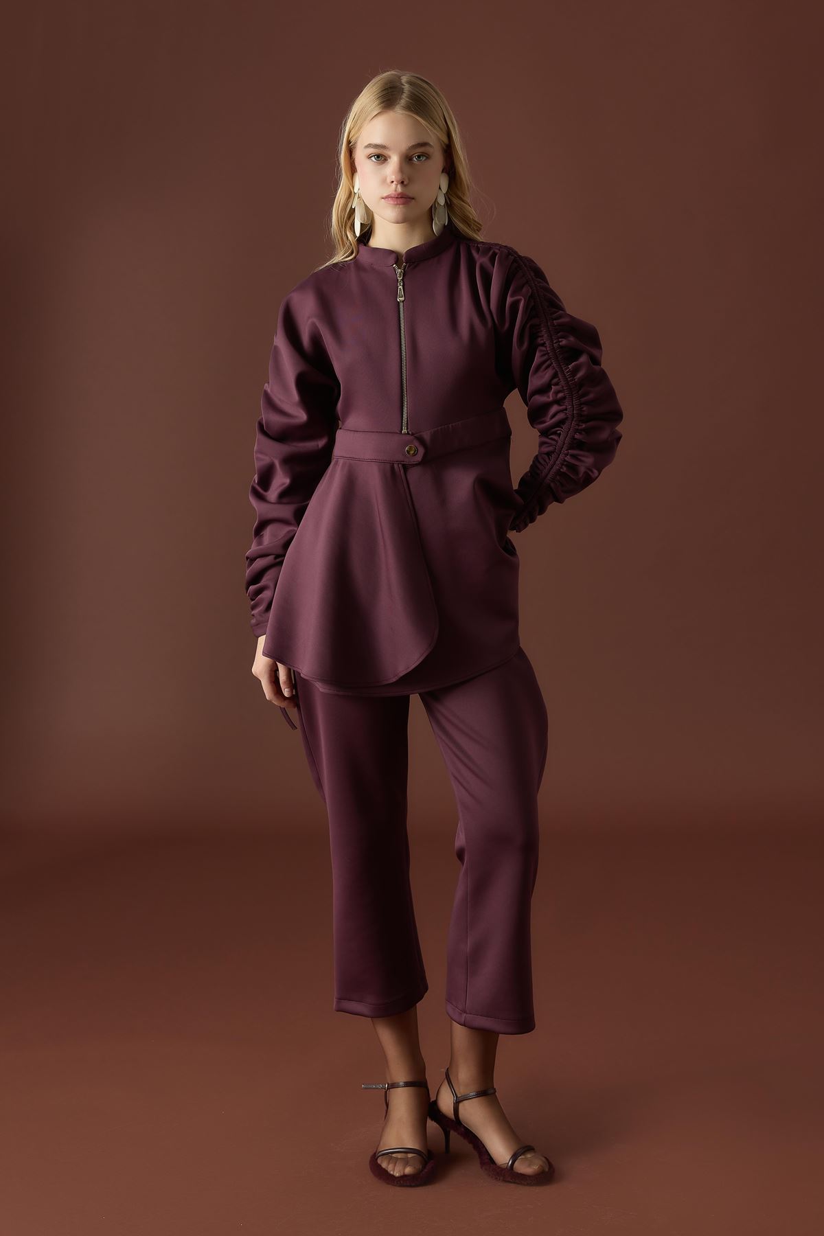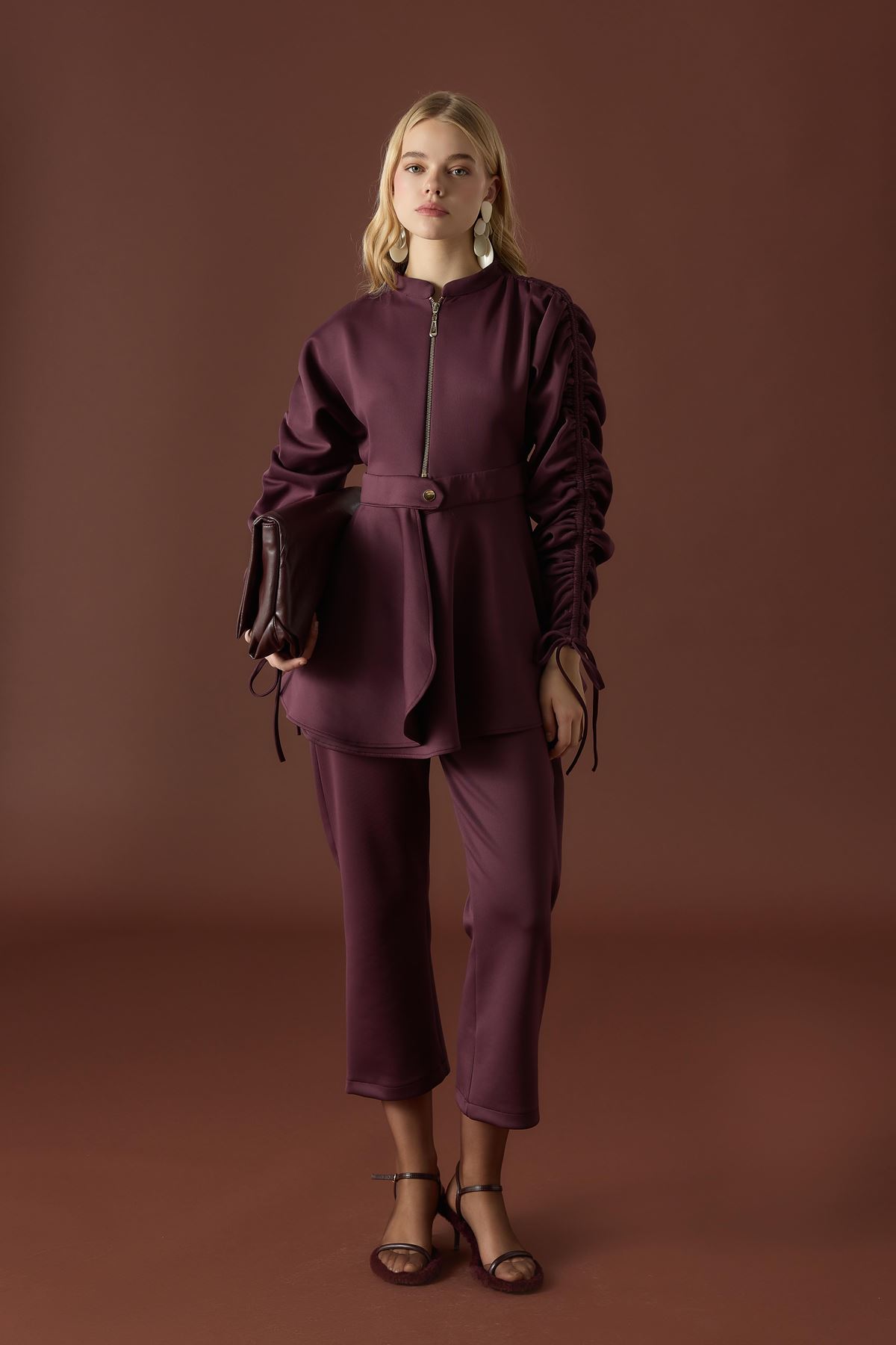 Sali Kol Tünelli Beli Kemerli Takım - Bordo