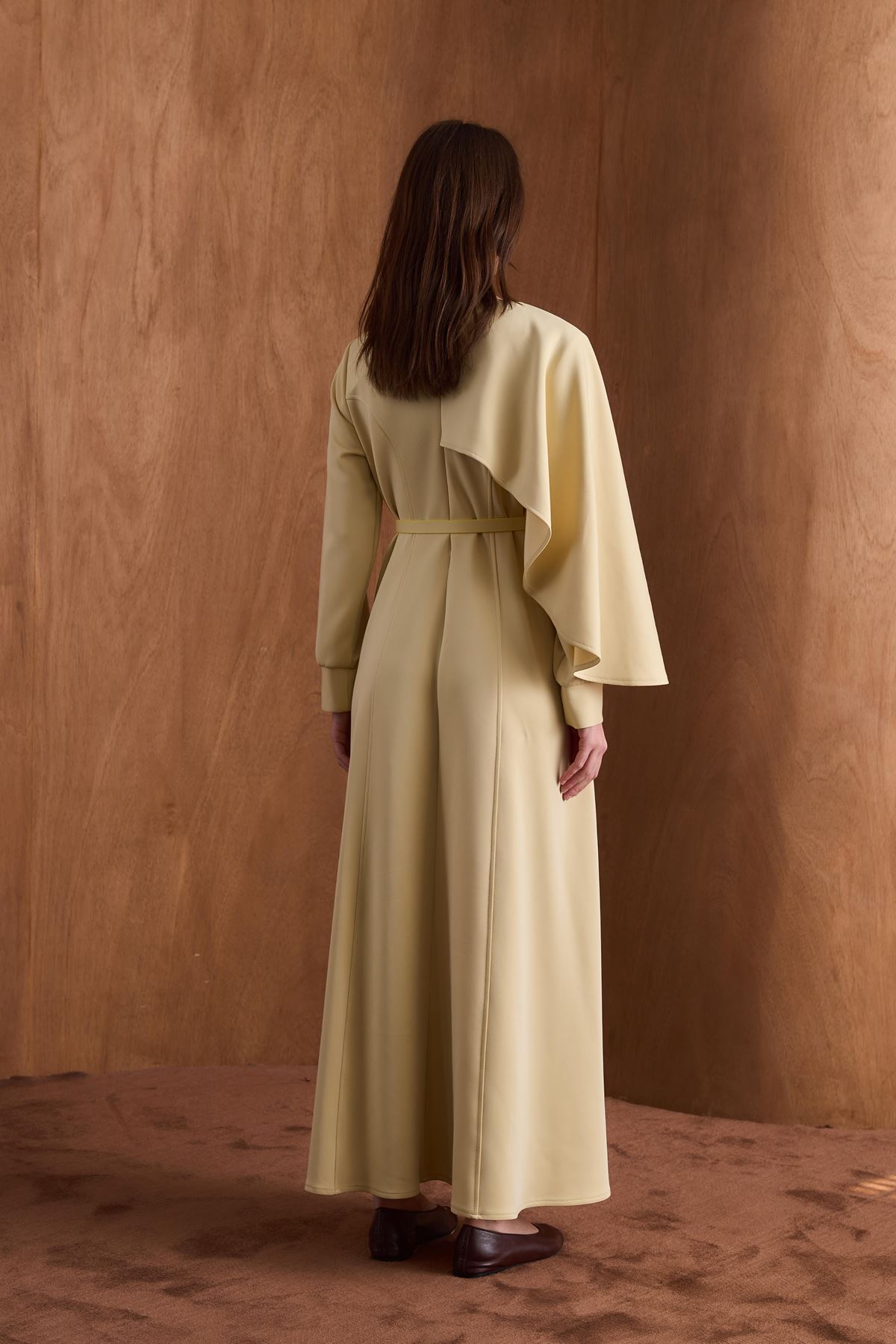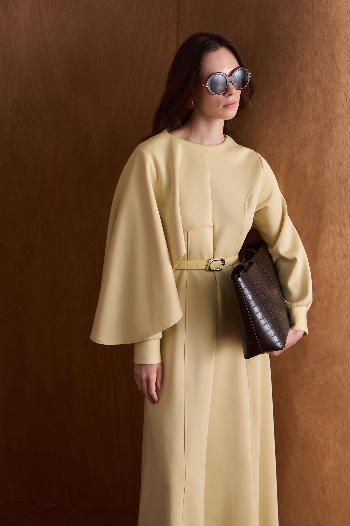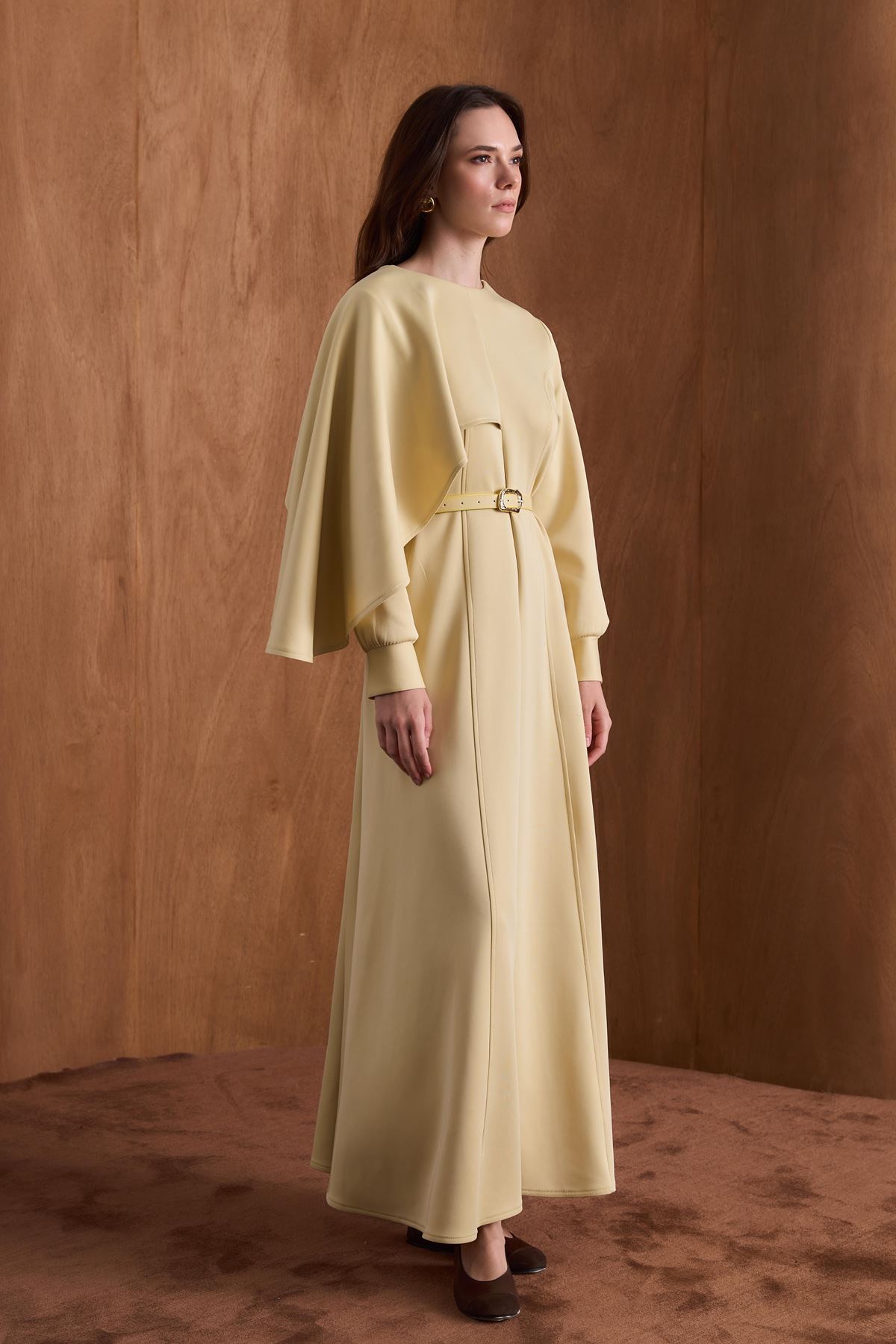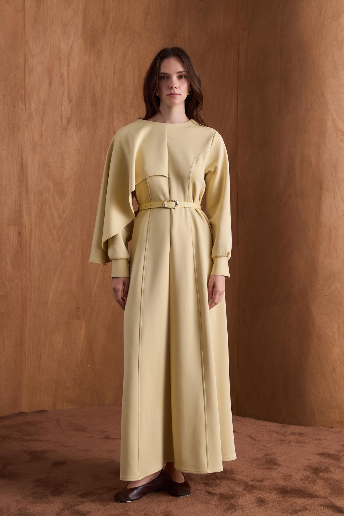 Amelie Omuzdan Şallı Scuba Elbise-Sarı