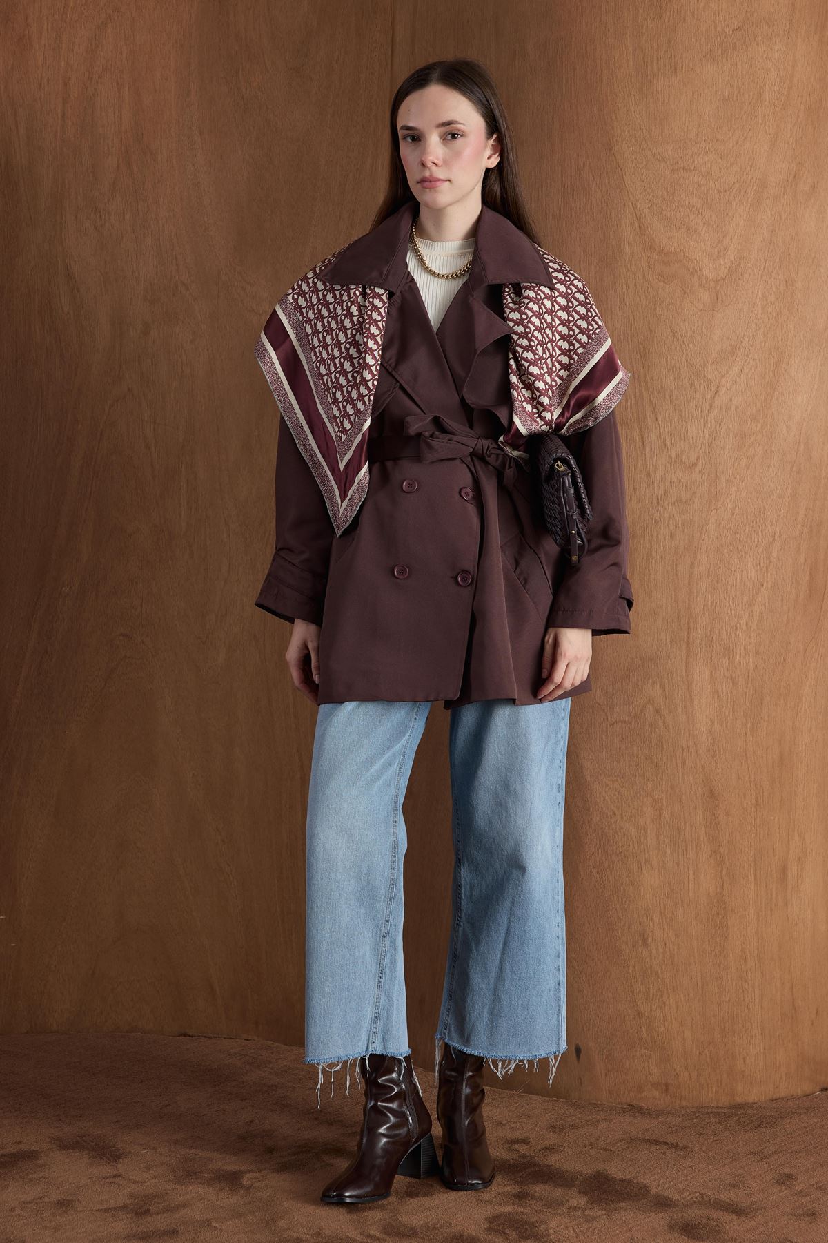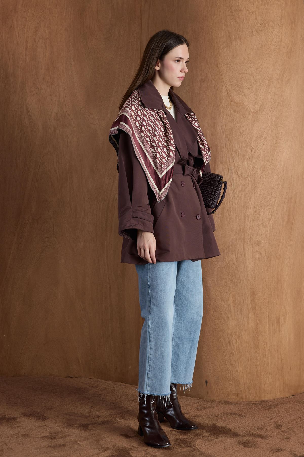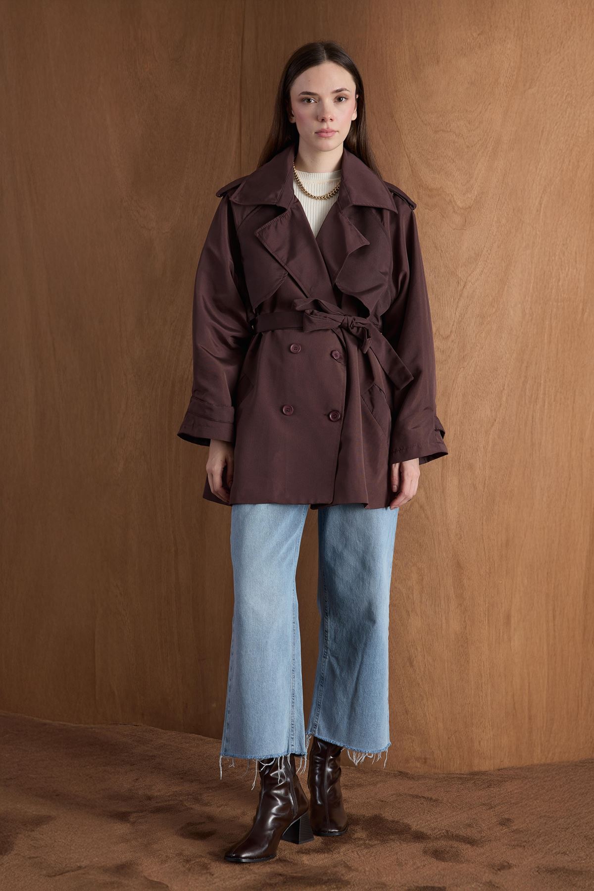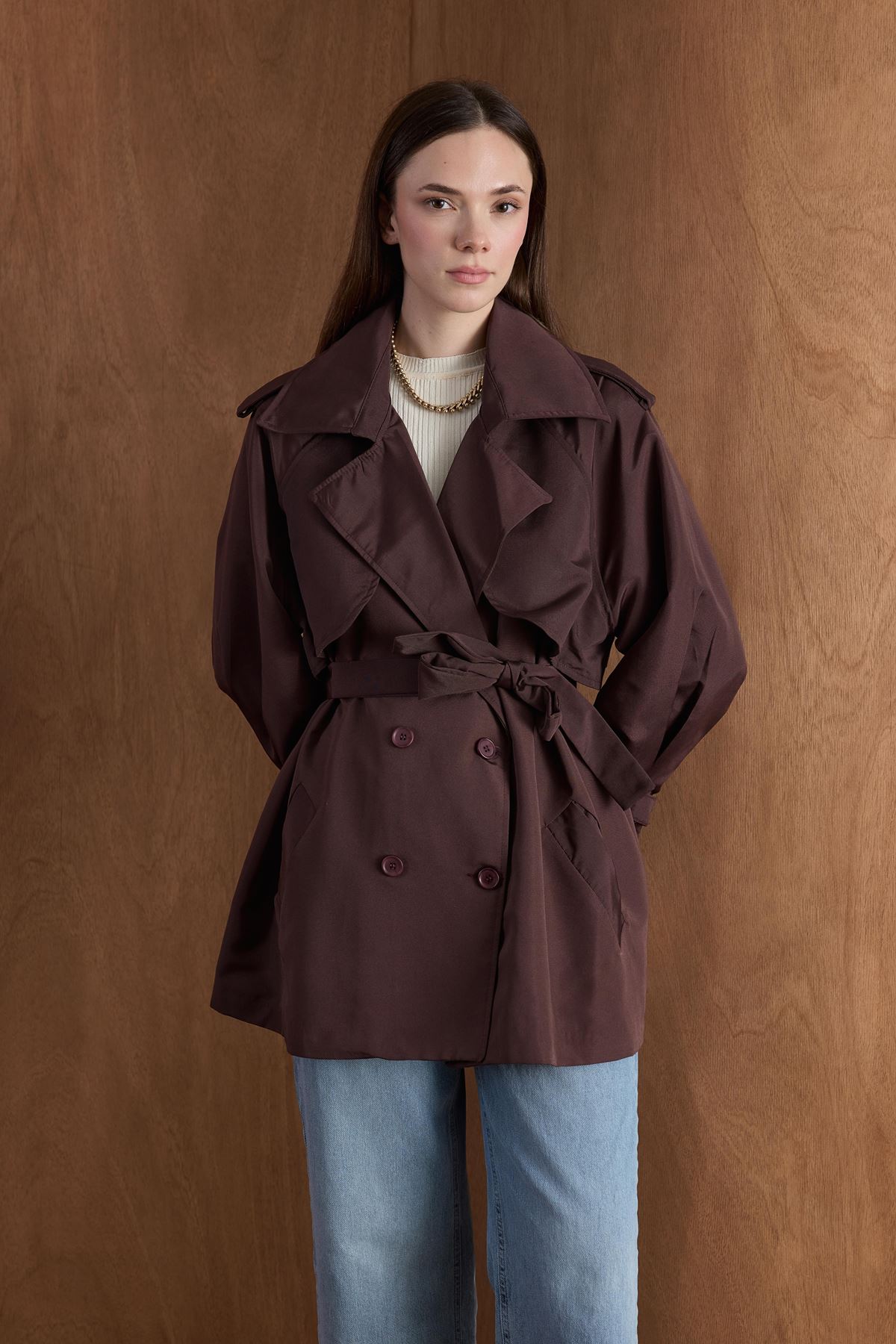 Apoletli Kısa Trençkot-Kahve