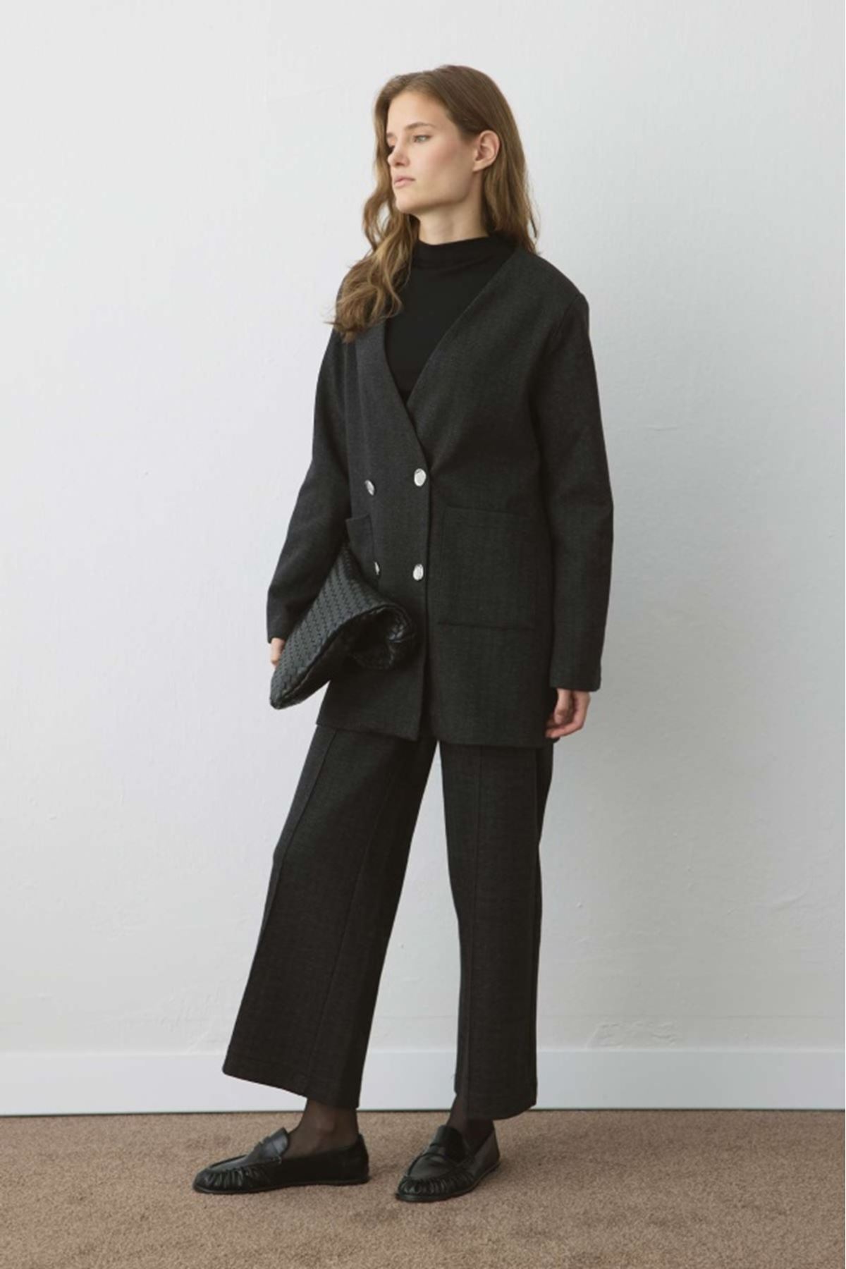 PANAMA ÖRGÜ PANTOLON KAHVE TAKIM ÖZELLİKLERİ Vatkalı verev yakalı çift düğmeli, cep detaylı, kolları düğmeli, biye kemerli ceket, pantolon beli arkadan lastikli, cepsiz, düz paça ve ütü izli dikiş detaylı, astarlı pantolon ceket takım.
