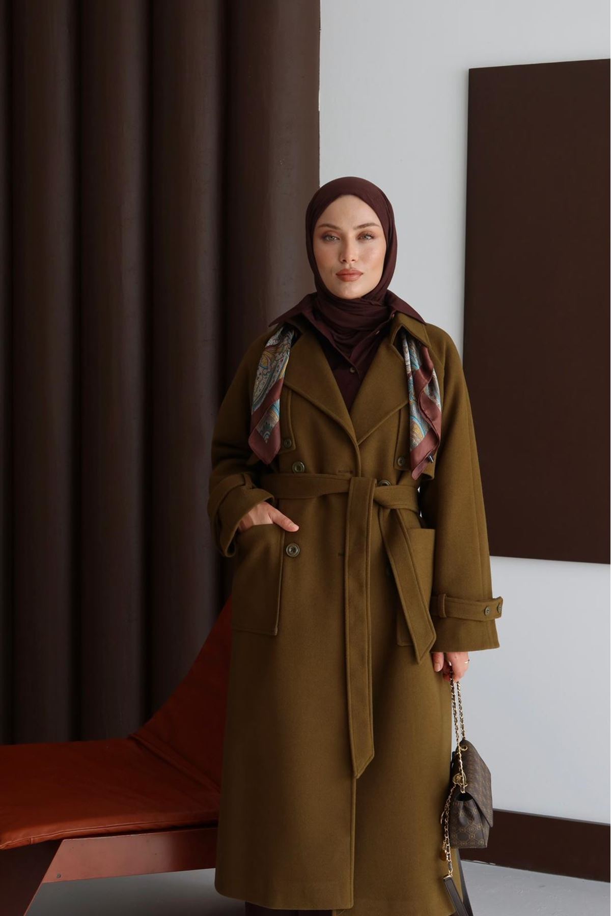 Cepli Düğme Detaylı Kaban