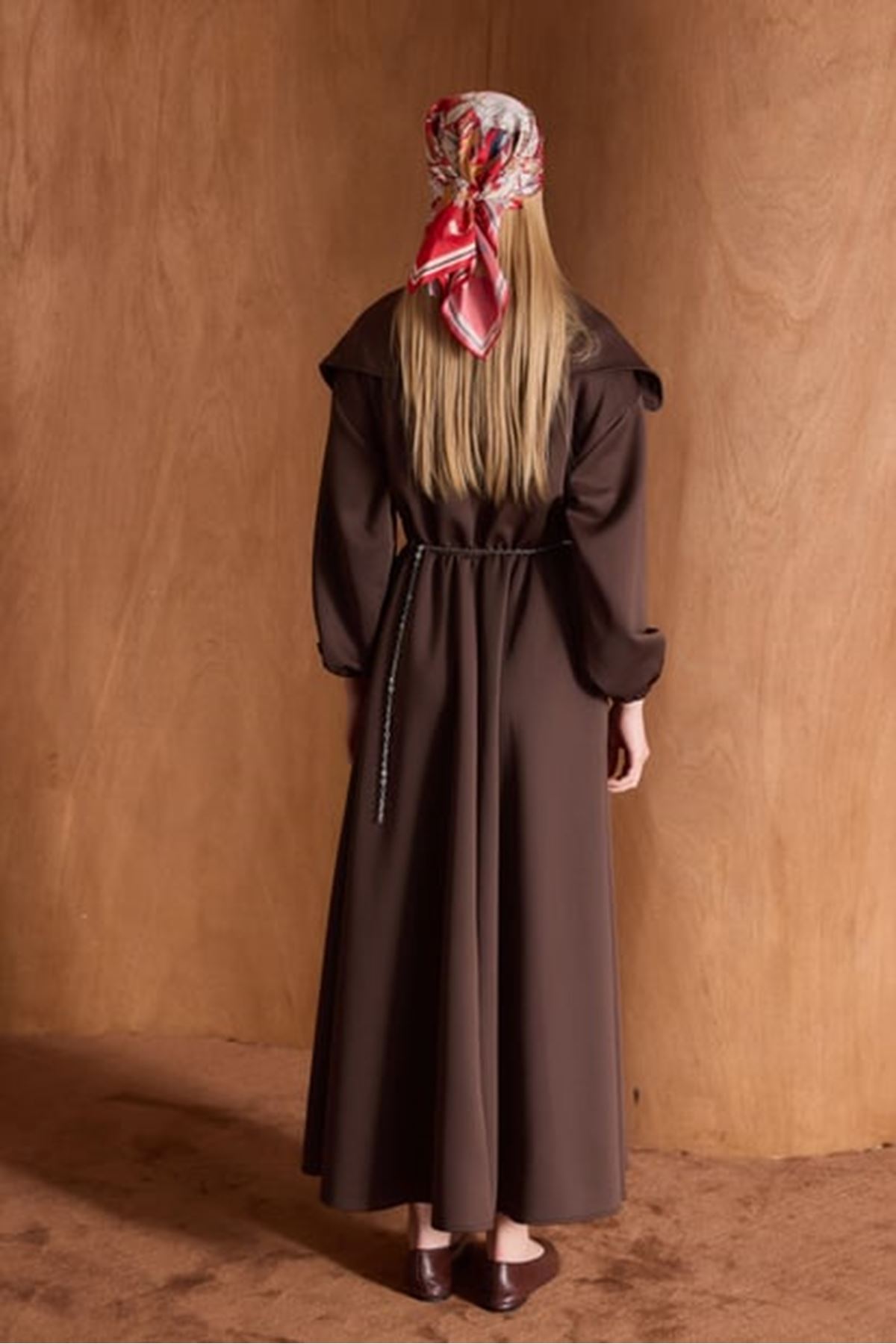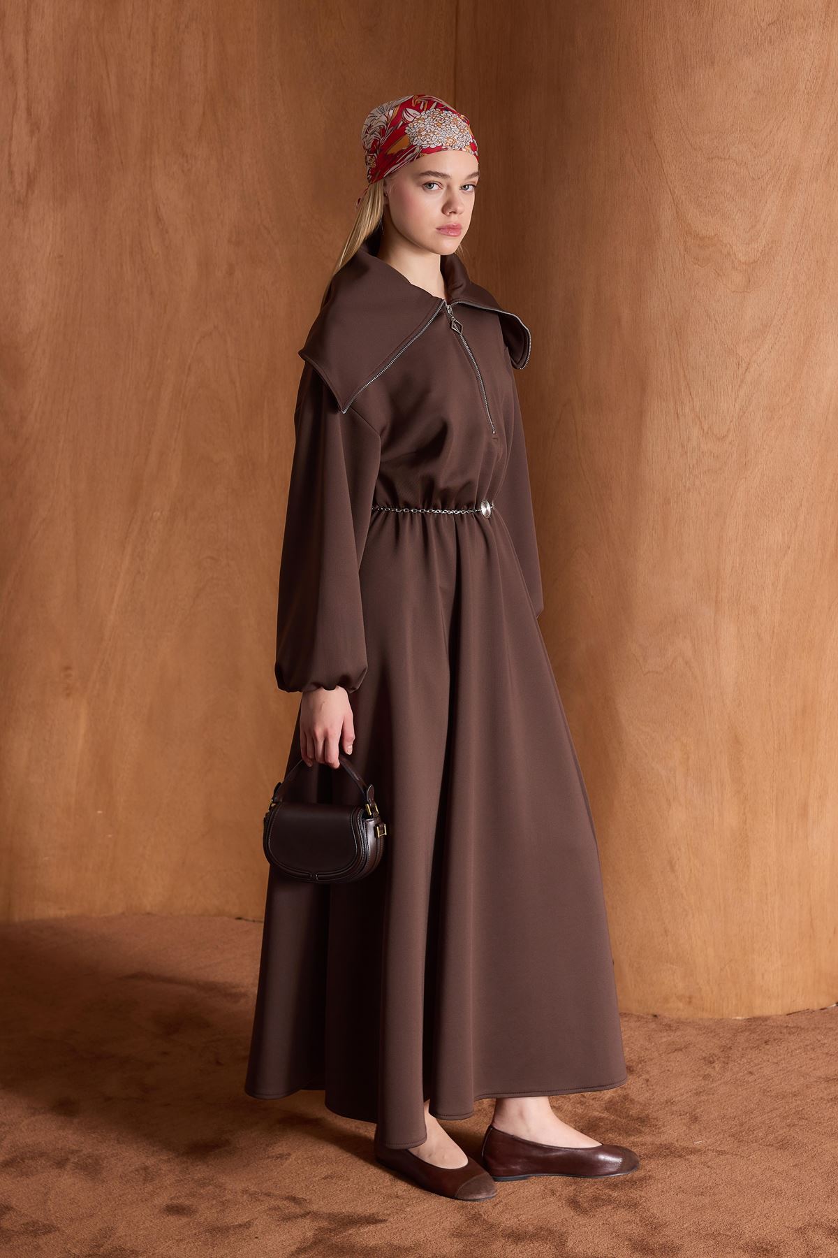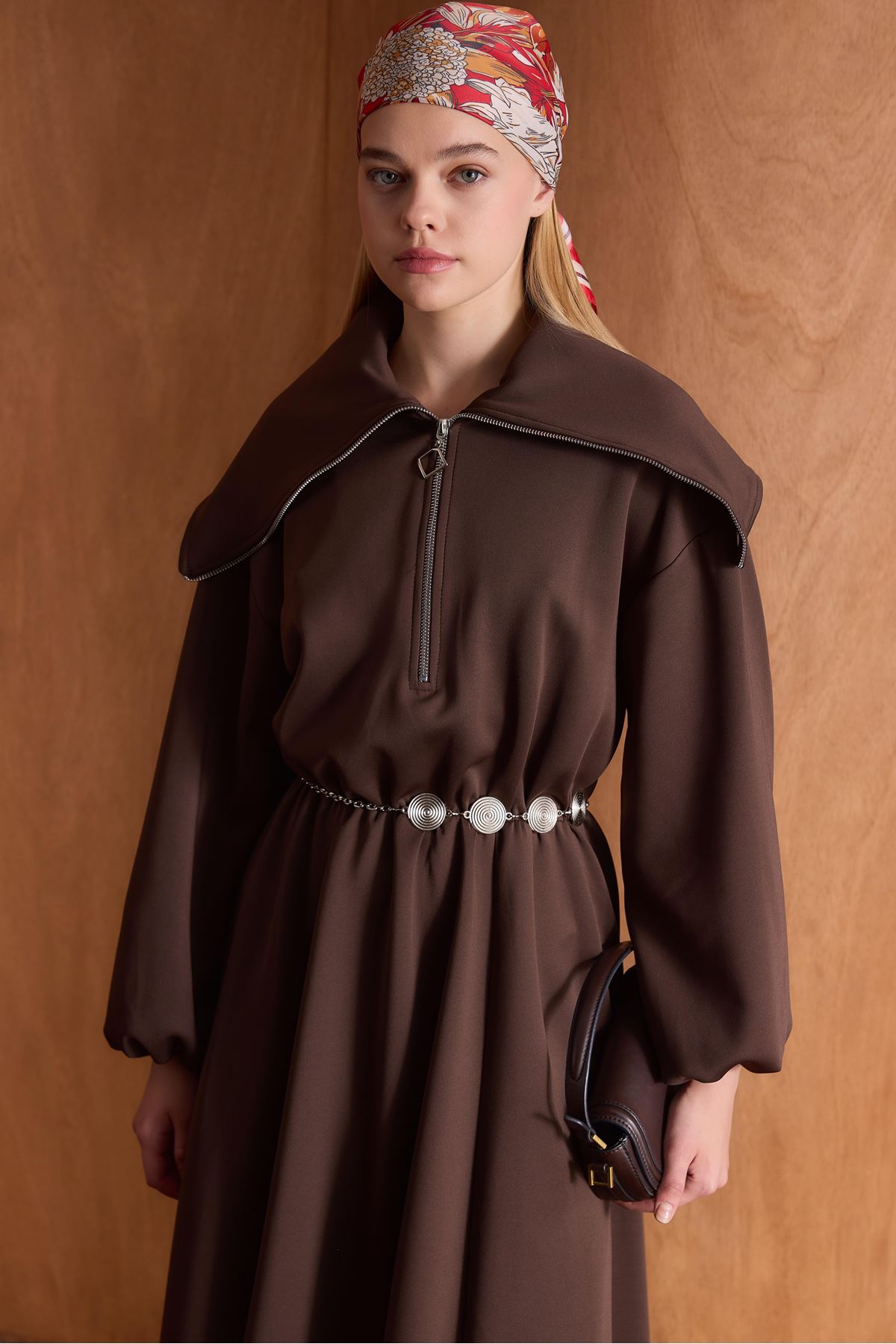 Aksesuar Detaylı Scuba Elbise - Kahve