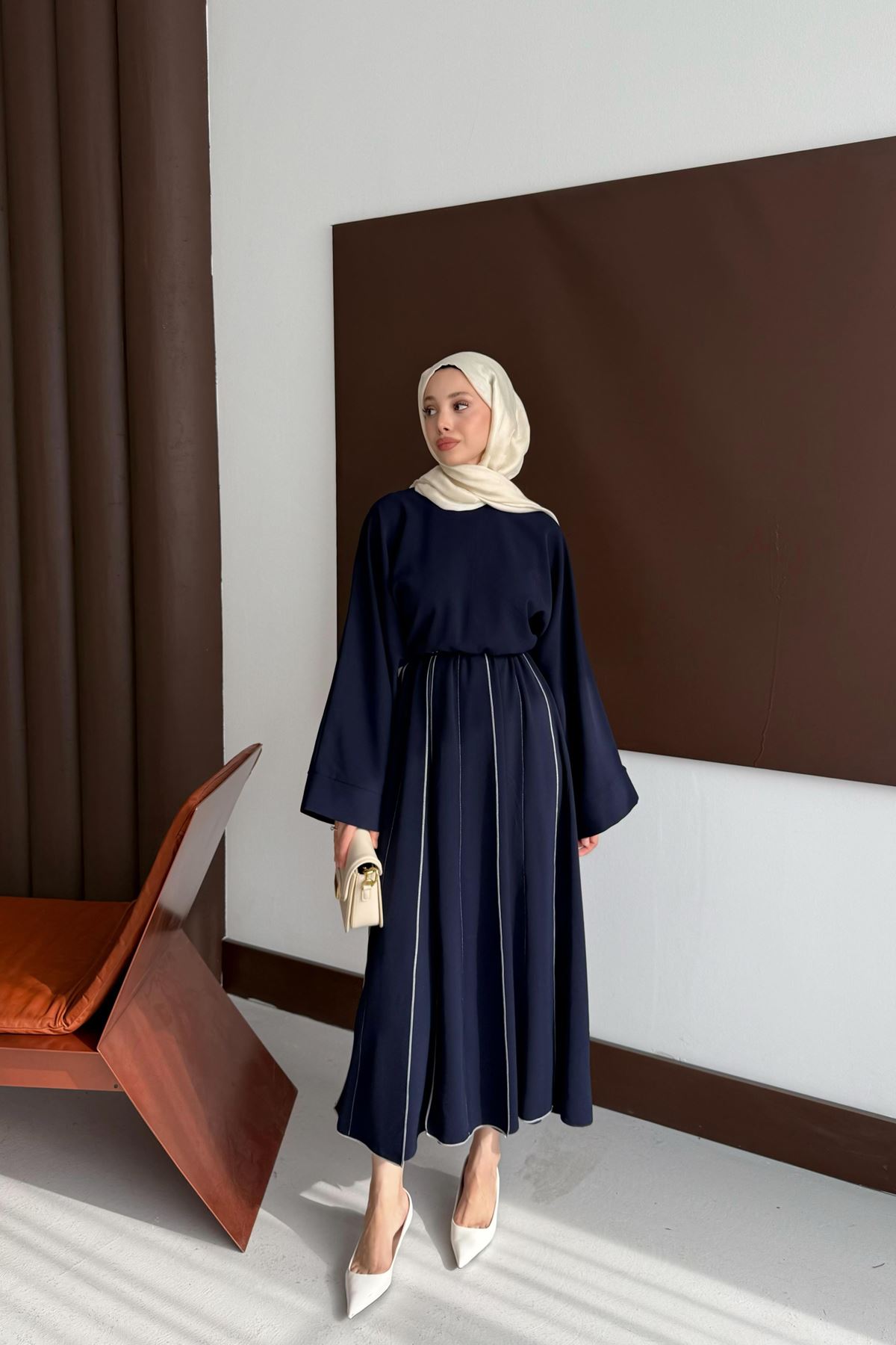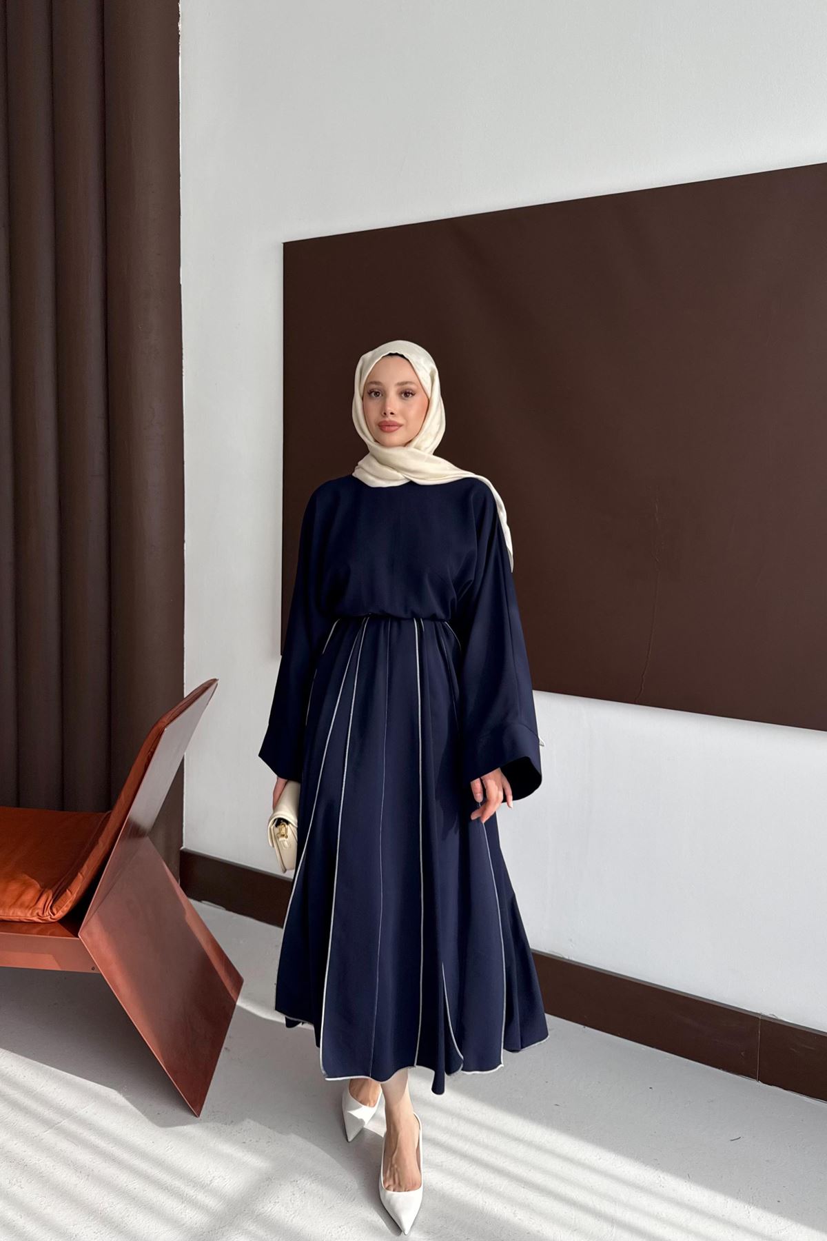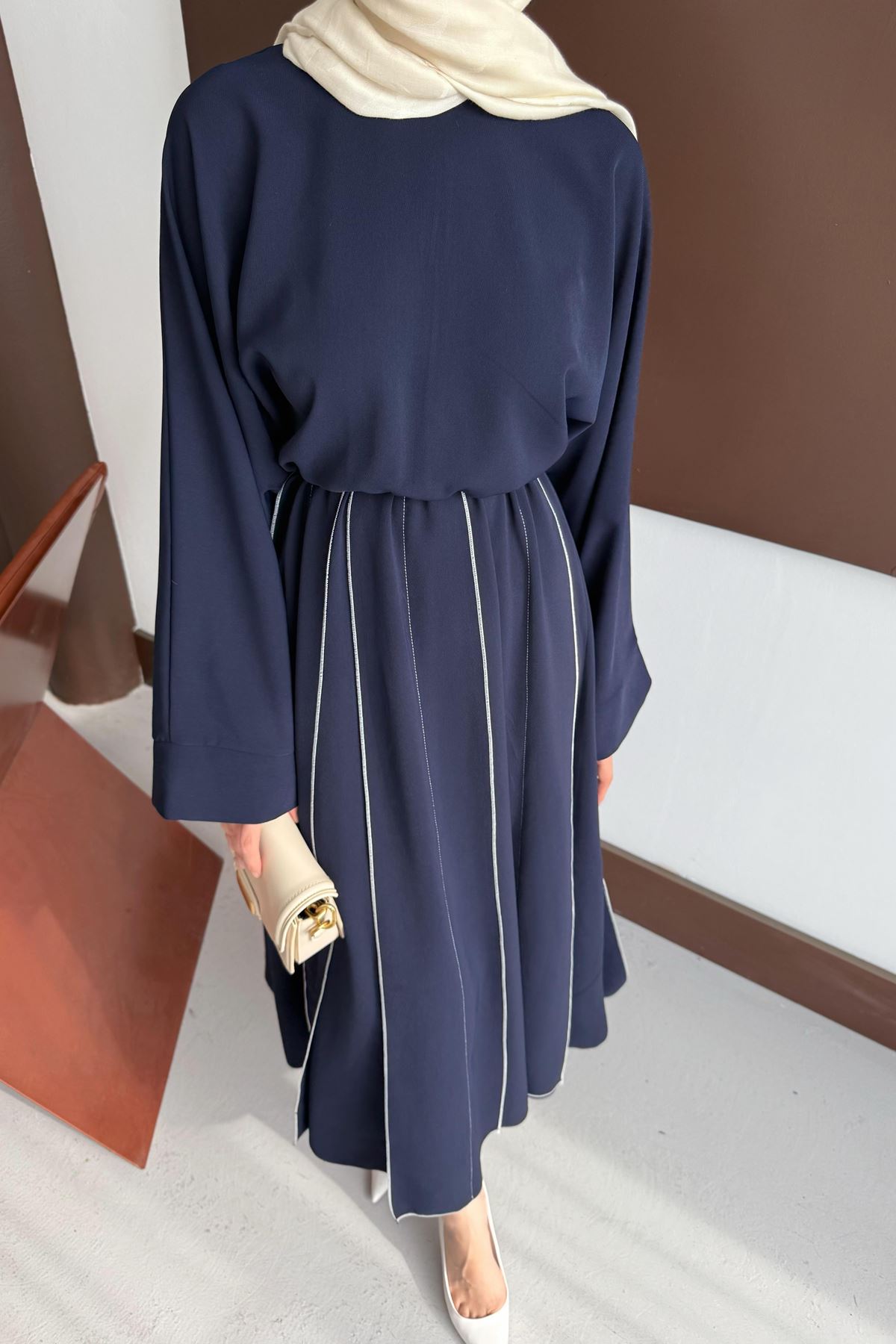 Aller Beli Lastikli Elbise - Lacivert